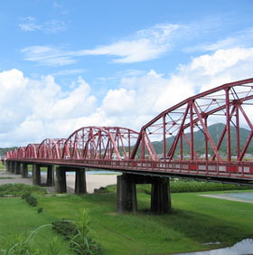 ●「日本最後の清流」とも呼ばれる四万十川の下流には、橋長507.2mの人目を引くあざやかな赤い橋が架かっている。橋梁名を四万十川橋(もしくは渡川橋)というこの橋は1926年(大正15年)に開通した。その見た目から「赤鉄橋」とも称され、その愛称にて知られている場合が多い。 徒歩エリアがあるためのんびり渡ることができる。 ●橋の上からは広大な四万十川河口域やキャンプ場、河川敷を眺めることができる。 ●旅館 福田より徒歩5分 |
